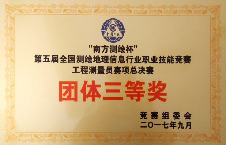 “南方測(cè)繪杯”全國第五屆測(cè)繪職業(yè)技能競(jìng)賽團(tuán)體三等獎(jiǎng)