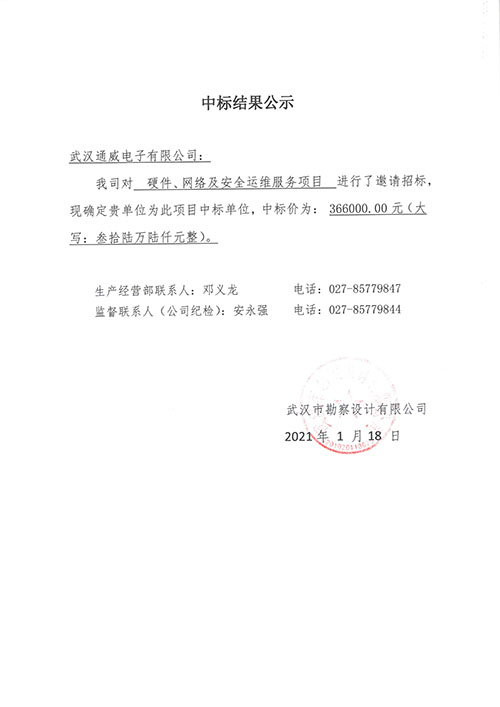 武漢市勘察設(shè)計有限公司硬件、網(wǎng)絡(luò)及安全運(yùn)維服務(wù)項目中標(biāo)結(jié)果公示